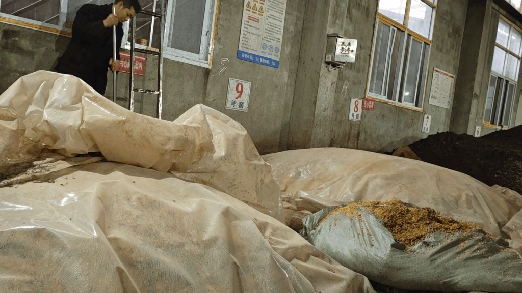 醉客酒业公司的厂房有些陈旧。记者以买酒的名义进入厂房,只见车间内停着一辆汽车,地面上堆积着酒醅,有两名男子在这里,其中一人表示他叫杜正军,是公司老板。他拿来散酒给记者品尝,并推销品牌为“黔勋台”的盒装白酒。交谈中,对于在直播平台销售的两款白酒“备战”“储备”,杜正军承认由其公司生产。